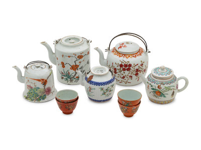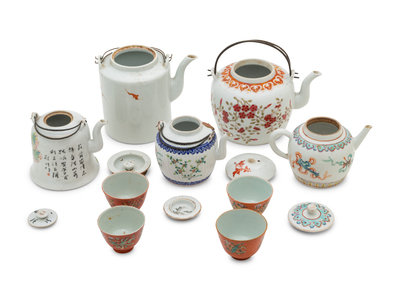 A Group of Chinese Porcelain Teapots and Teacups