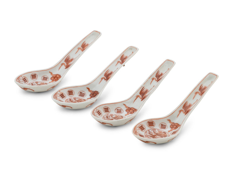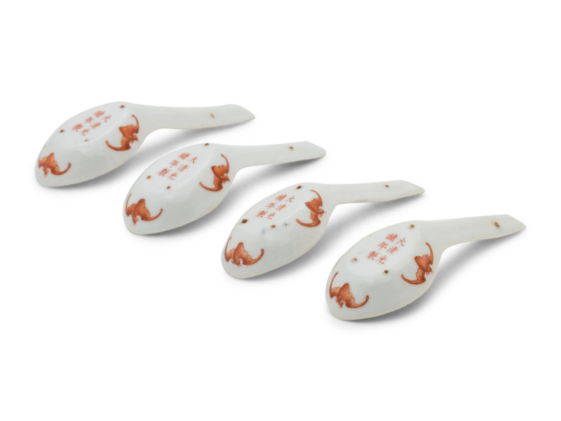 A Set of Chinese Iron Red Decorated Porcelain Spoons