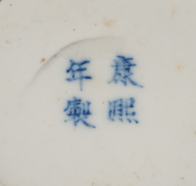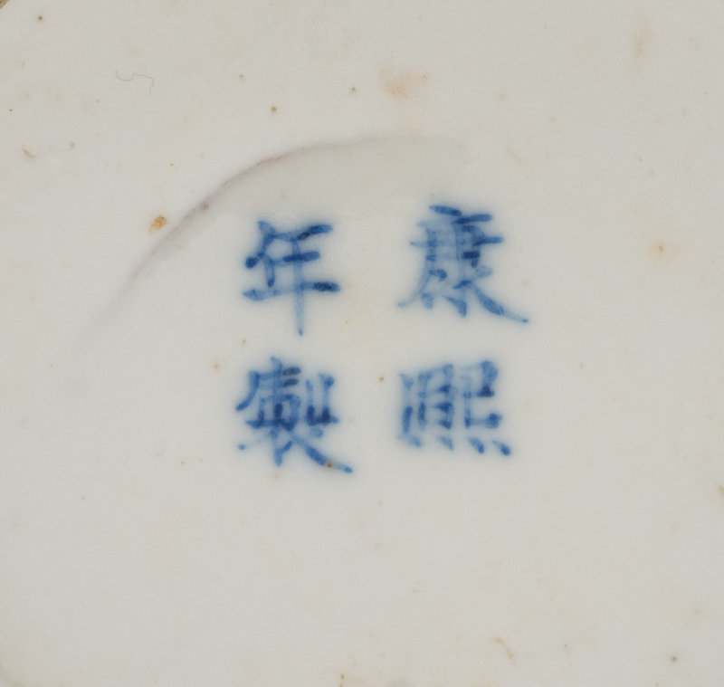 the first a famille rose example, painted with a boy in the roundel, against a coral-red ground, the second a blue and white example.