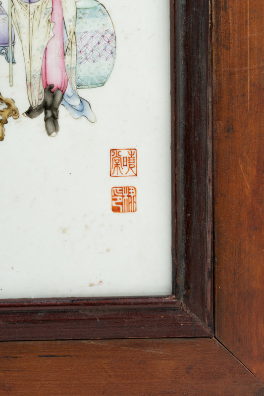 A Chinese Famille Rose 'Figure' Porcelain Hanging Screen