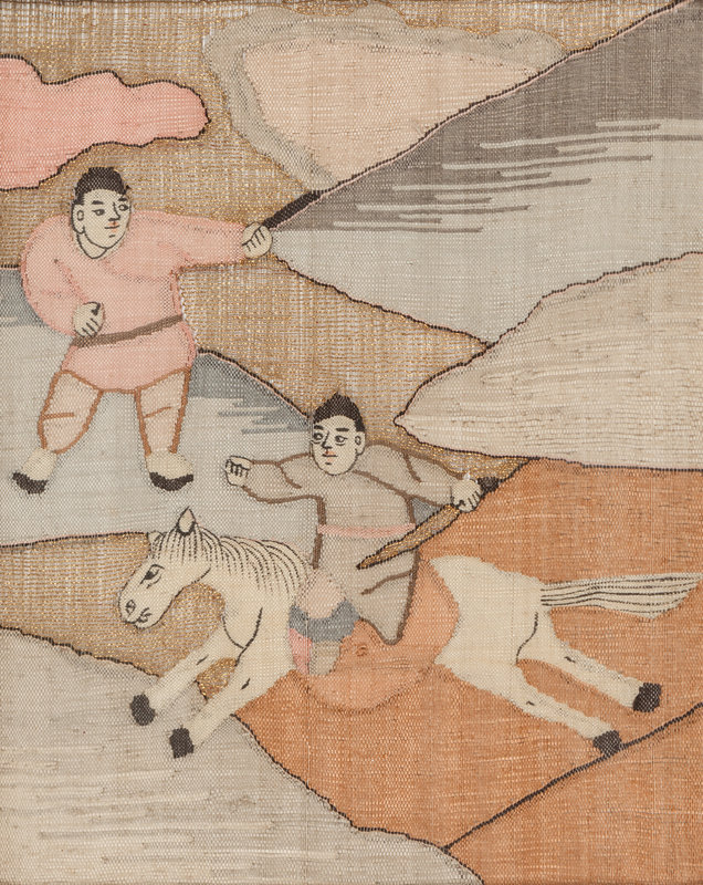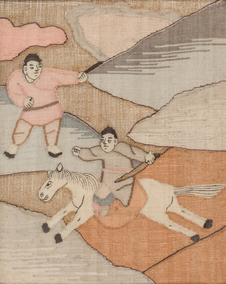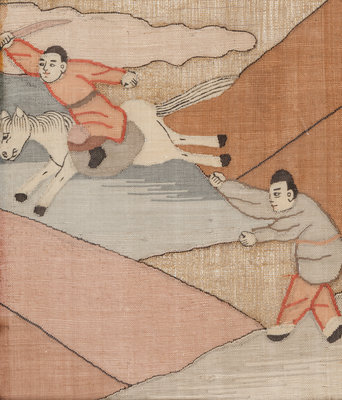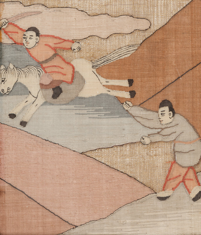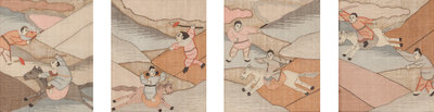 Eight Chinese Cream Ground Kesi Woven Silk Panels