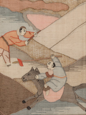 十九世紀 米黄地緙絲方飾八件