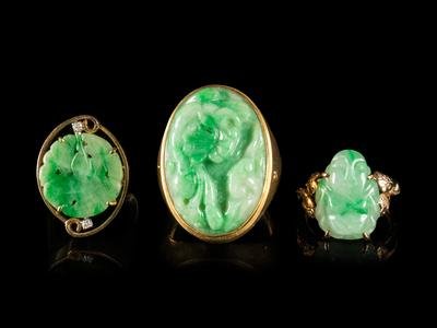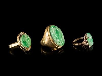 Three Jadeite Inset Gold Rings