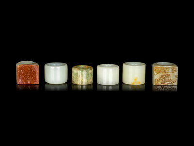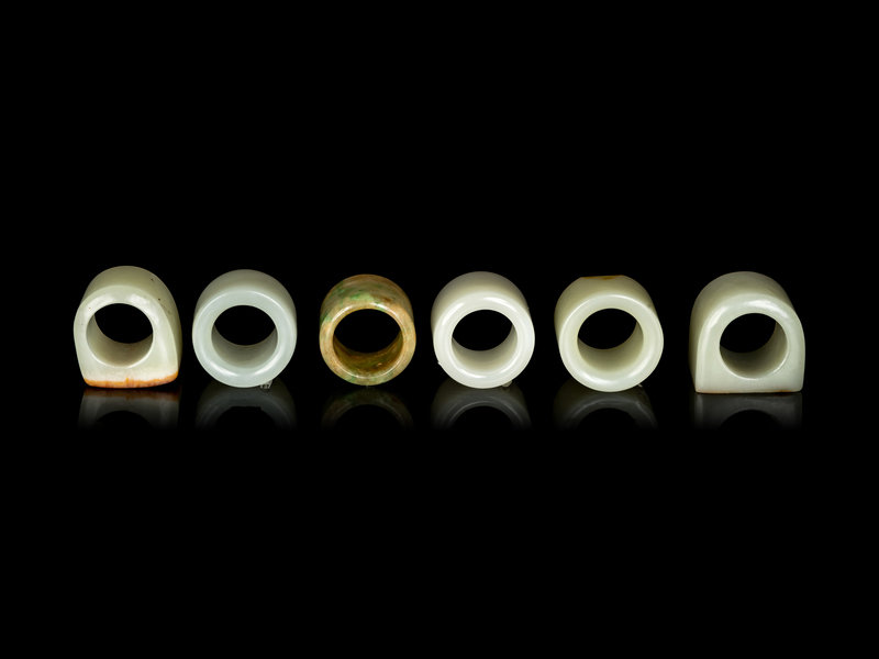 Six Chinese Jade Archer's Rings