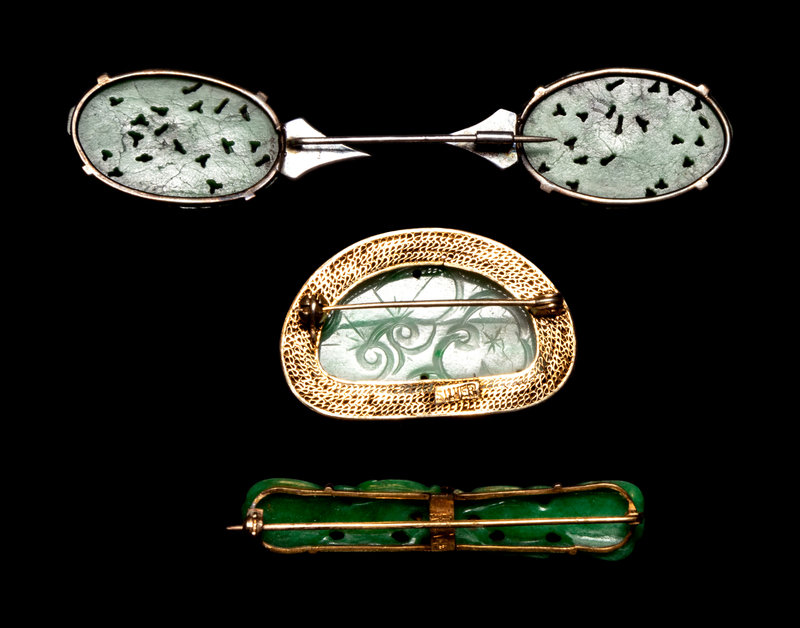 Three Chinese Silver Mounted Jadeite Brooches