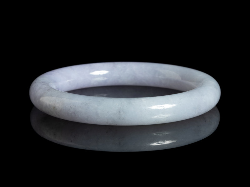 the creamy stone blushed with icy blue and lavender tones, carved to a highly polished in the form of a rounded ring.