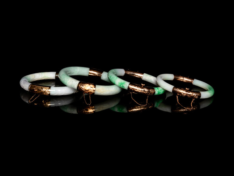 Four Chinese Metal Mounted Jadeite Bangles