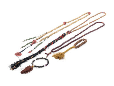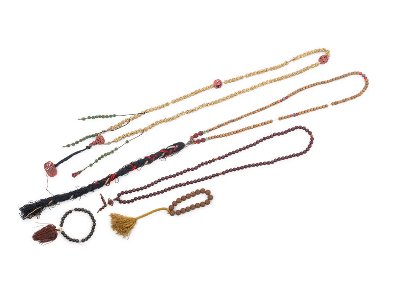 Five Strands of Chinese Hardstone and Wood Prayer Beads