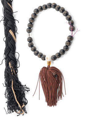 comprising three smooth beaded examples, one of carved and reticulated beads, and one carved example.