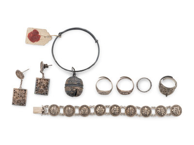 Seven Chinese Silver Jewelry and One Silvered Metal Ring