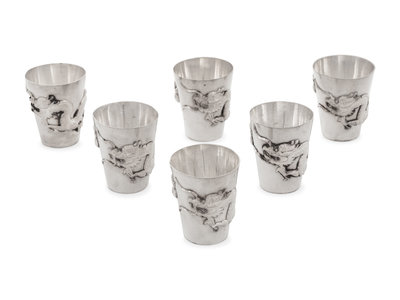 約1850-1920年,“嵣玉華”中國外銷銀小盃子一組六件