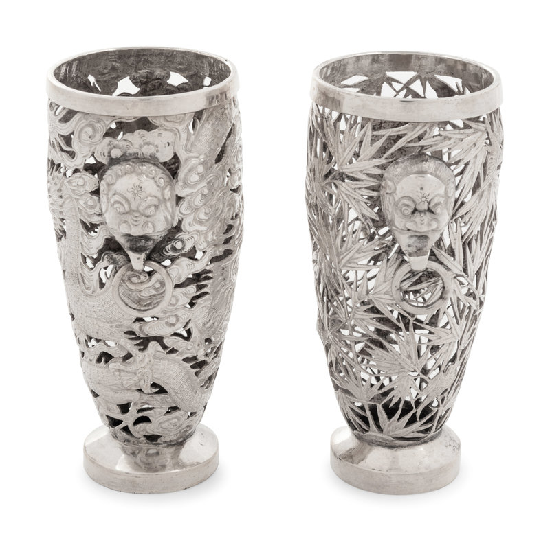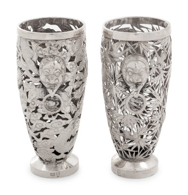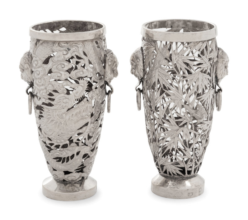 約1880-1925年 上海華珍 中國銷銀瓶兩件