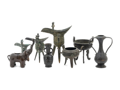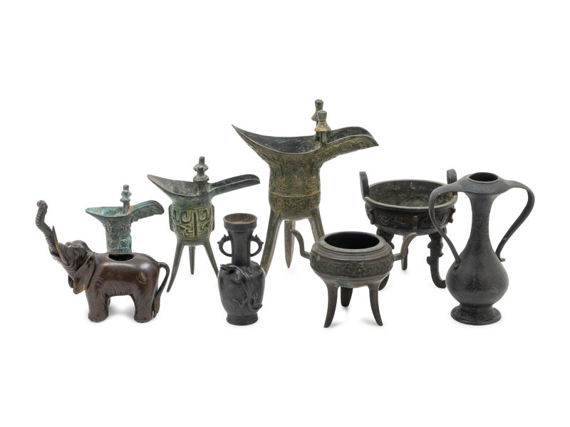 comprising an elephant censer, two vases, two tripod ding-form censers, and three jue wine cups.