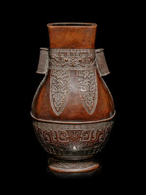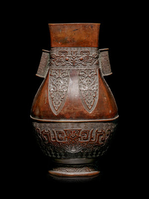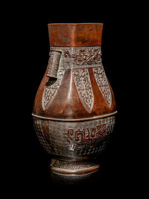 清十八/十九世紀 銅夔龍蟬紋貫耳壺