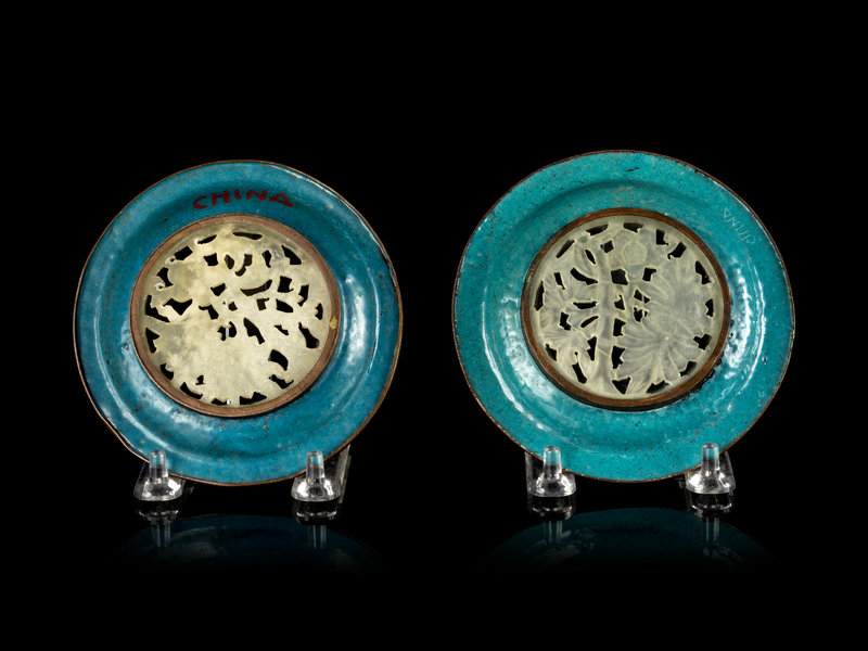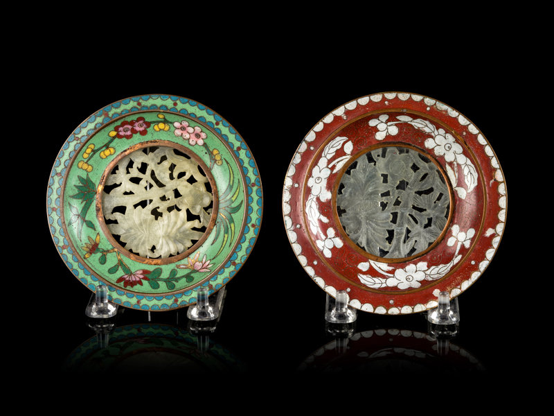 Two Chinese Hardstone Inset Cloisonné Enameled Dishes