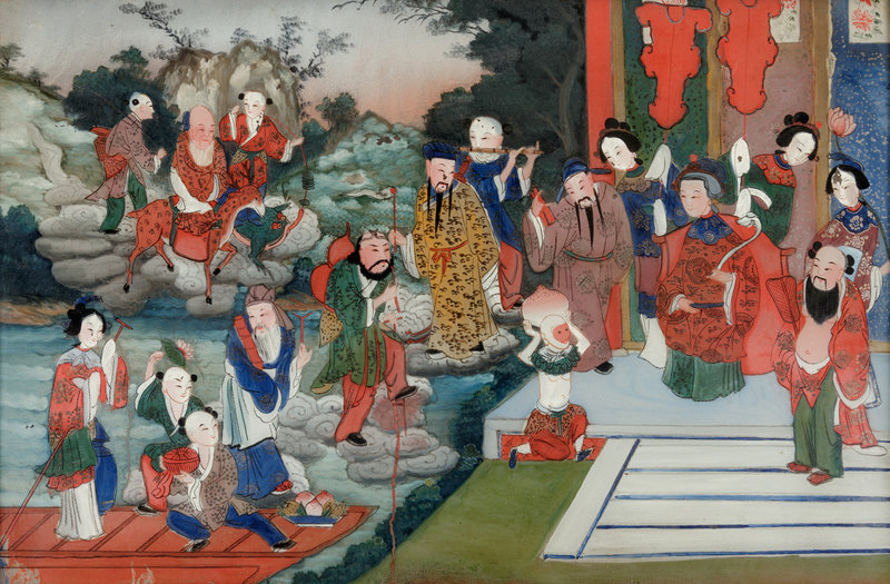 each depicting a gathering scene of immortals.