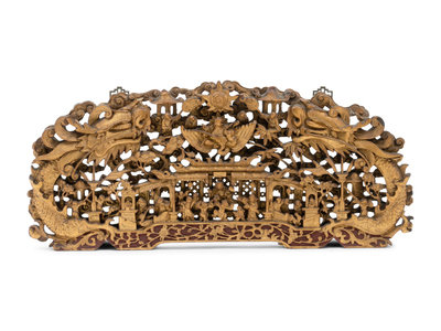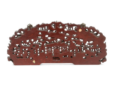 A Chinese Gilt and Red Lacquered Wood Panel