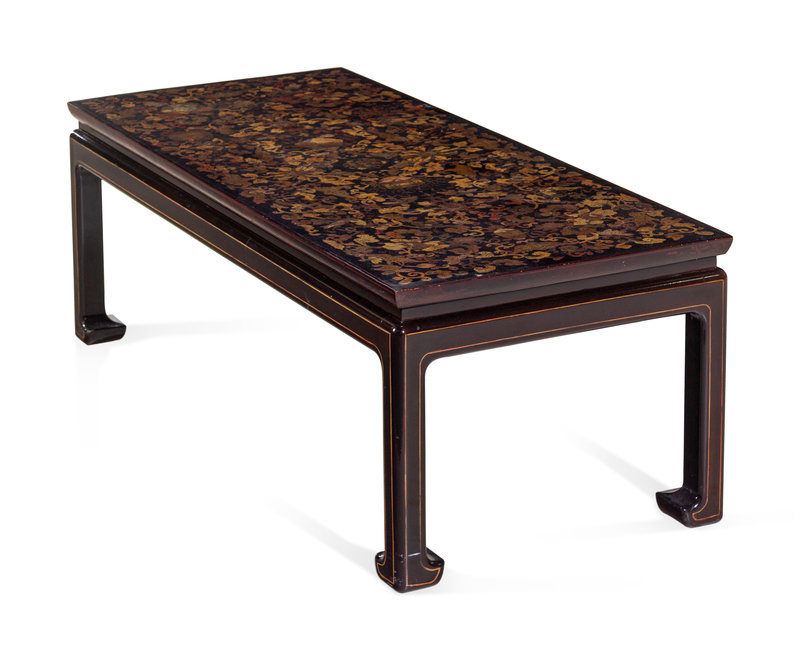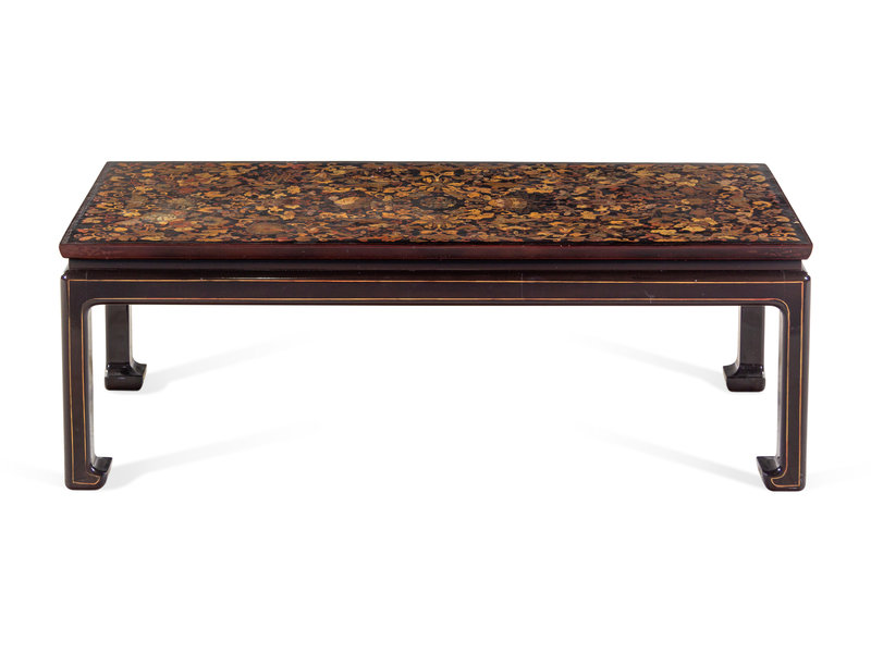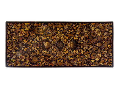 the top panel of rectangular form with allover scrolling foliate decoration.
