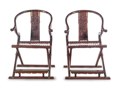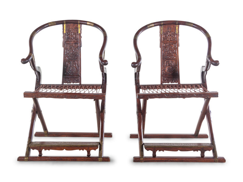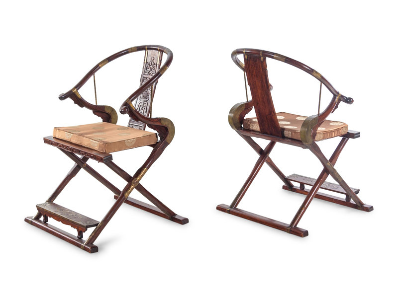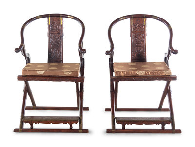A Pair of Chinese Hardwood Horseshoe-Back Folding Chairs, Jiaoyi