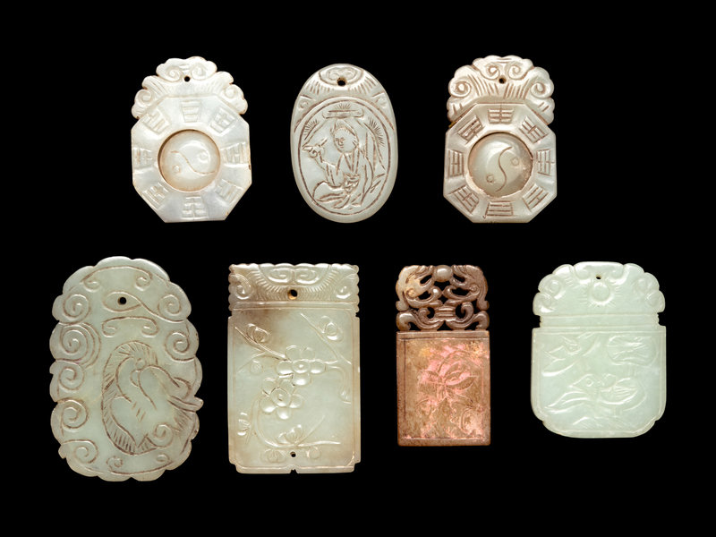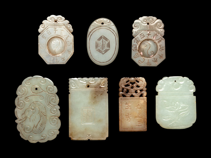 Seven Chinese Carved Jade Plaques