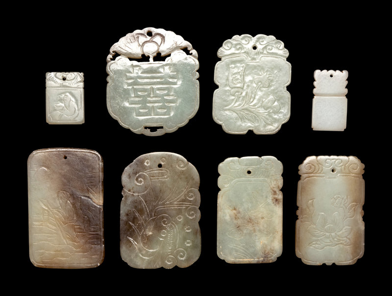Eight Chinese Celadon Jade Carved Plaques