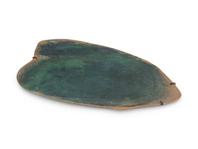 A Large Chinese Mottled Green Jade Plaque