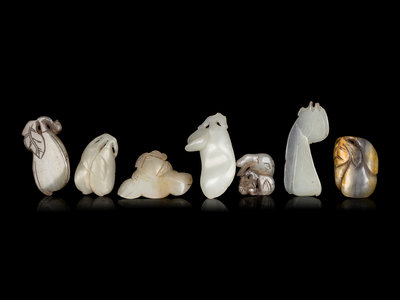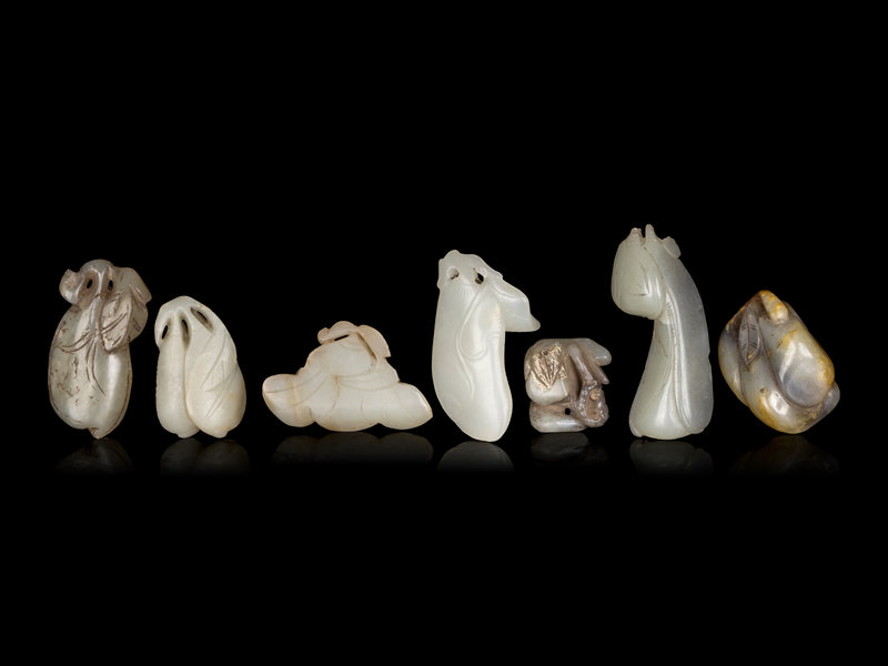 Six Chinese Celadon Jade Carved Figures of Fruits