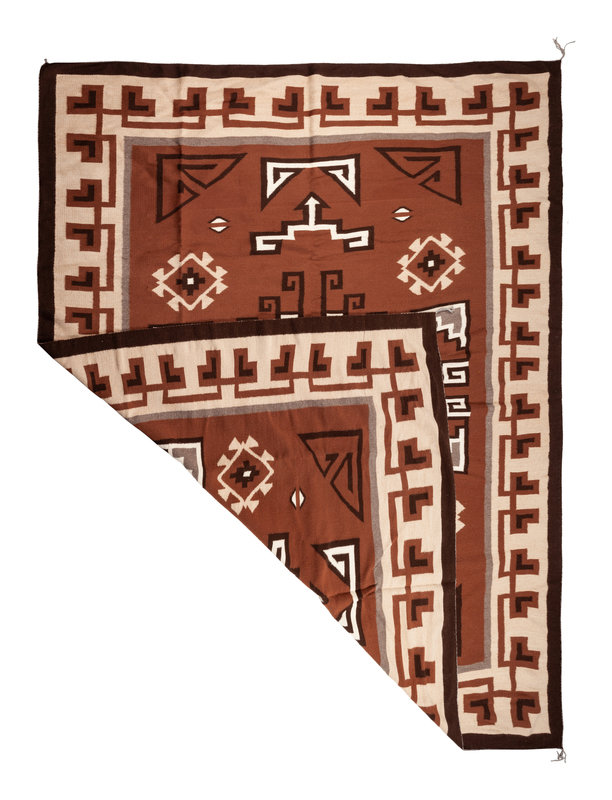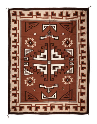 hand-spun wool; triangular designs surrounded by a crenelated border