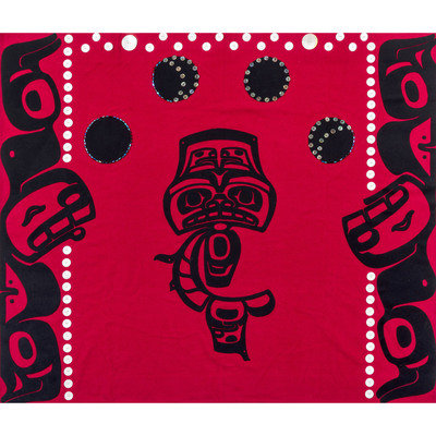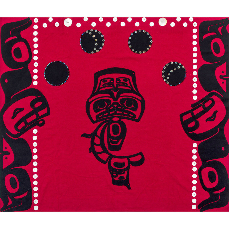 with dogfish imagery and white and iridescent shell buttons