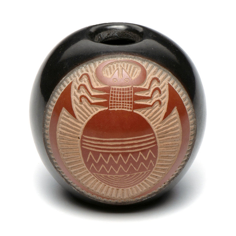 Black, Red, and Sienna Sgraffito Seed Jar, with Iktomi