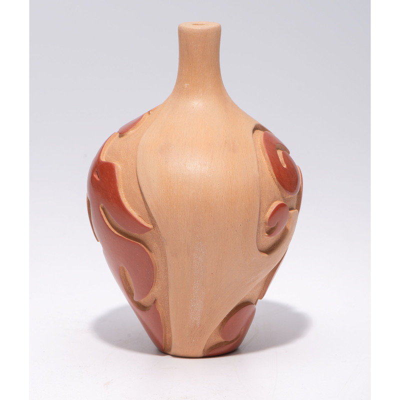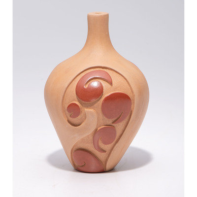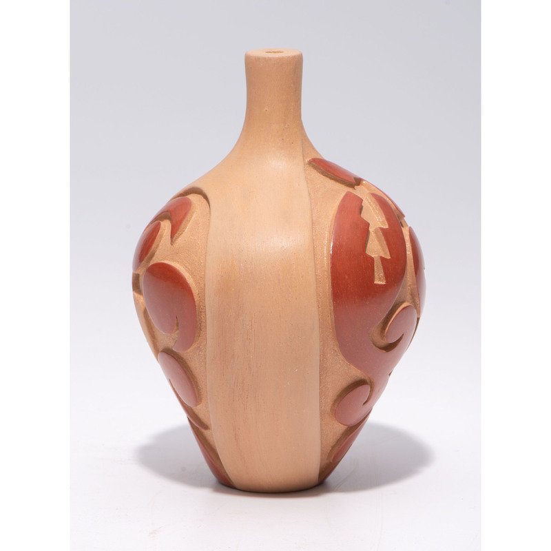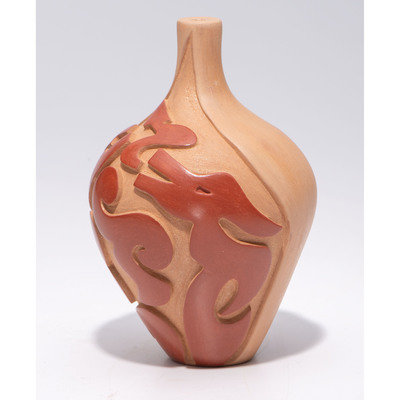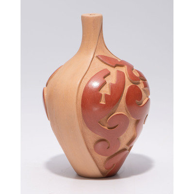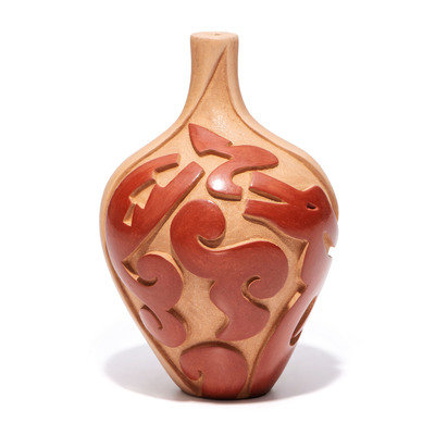 Carved Micaceous Redware Jar, with Avanyu and Raindrops