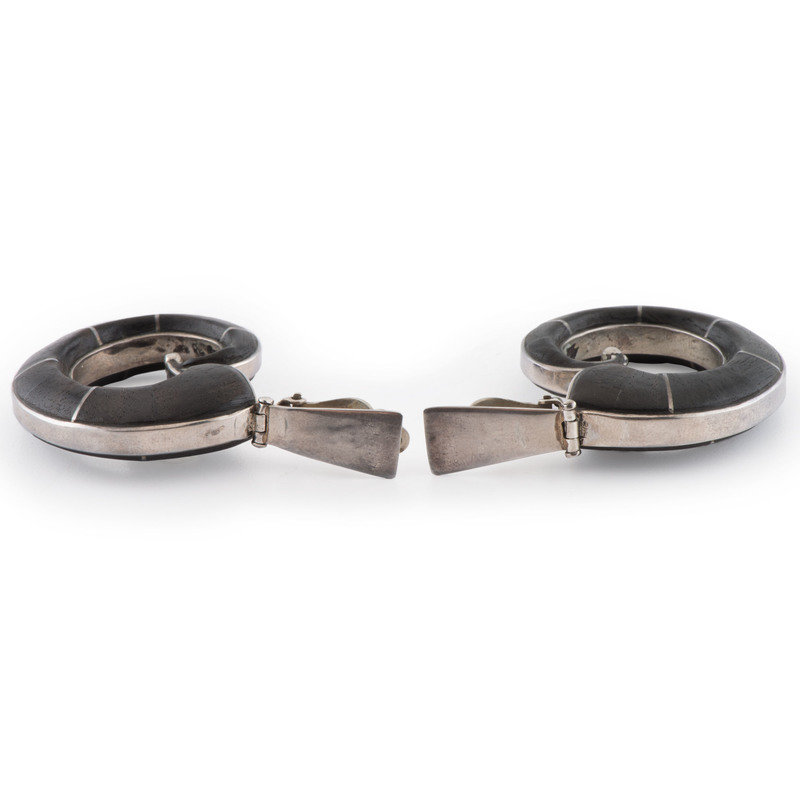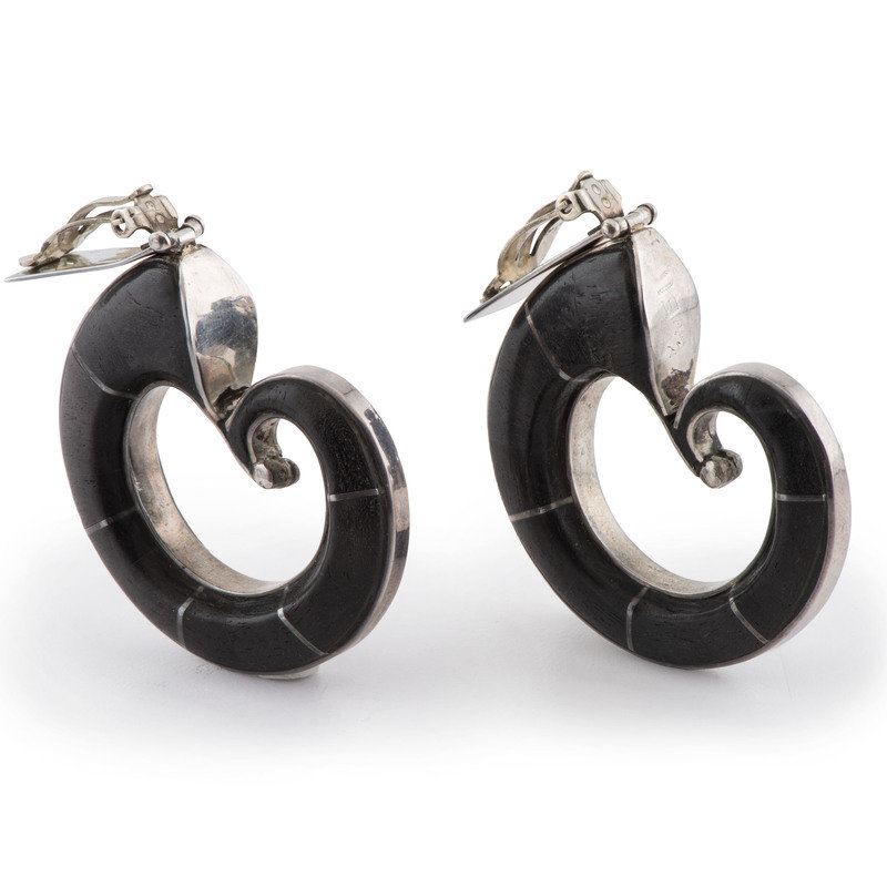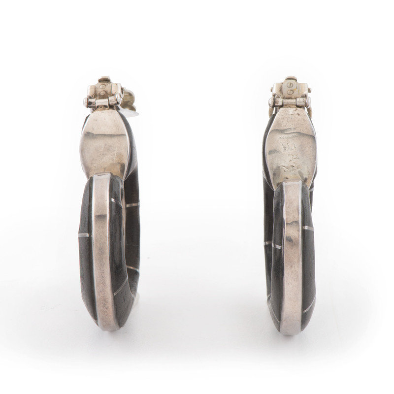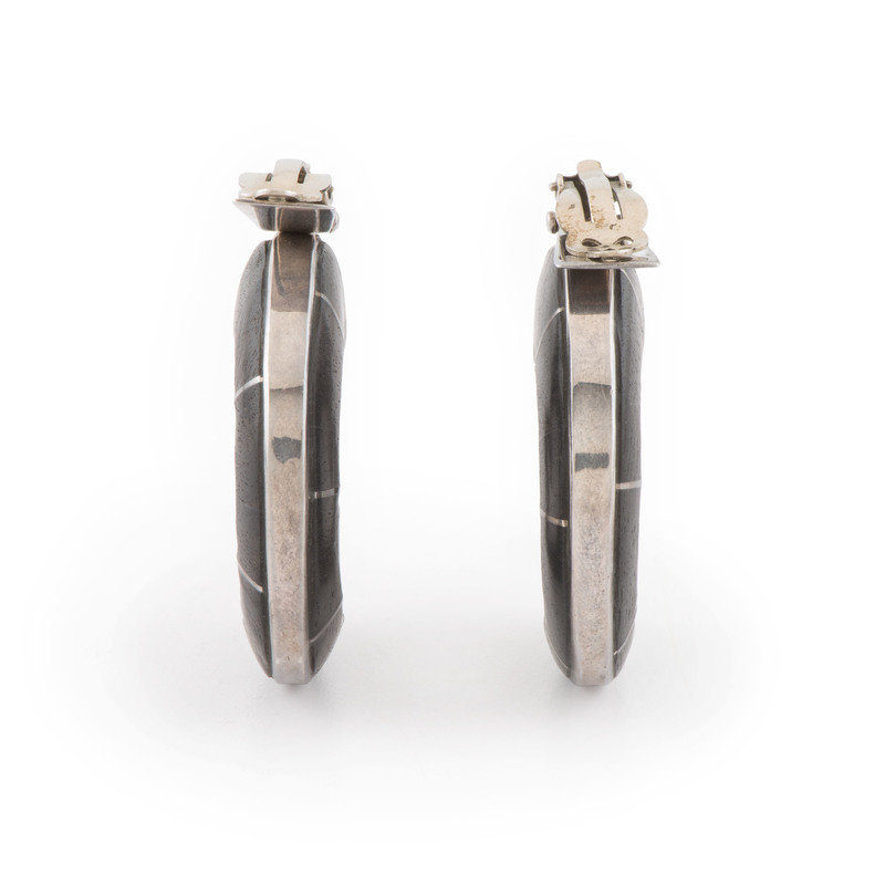 Silver and Ironwood Clip Earrings