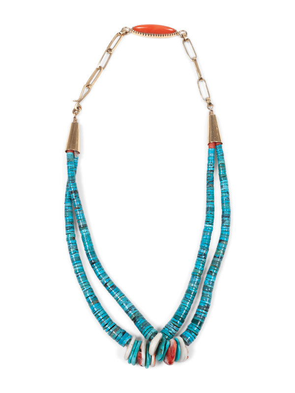 Turquoise, Spiny Oyster, Coral, and 18k Gold Necklace