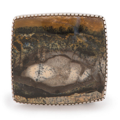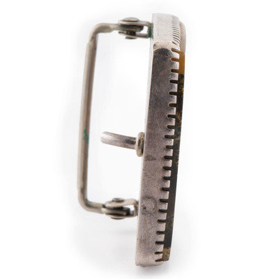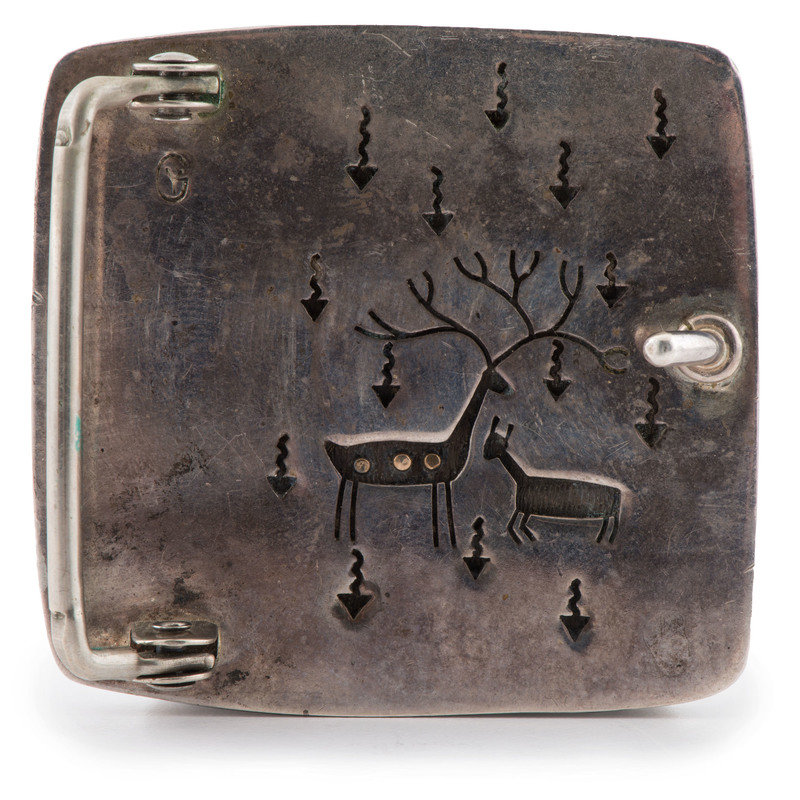 Silver and Petrified Wood Belt Buckle, with Deer and Raindrop Design on Reverse