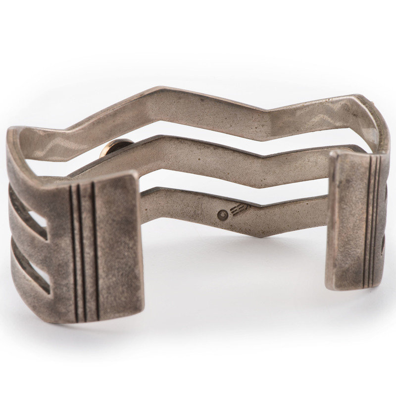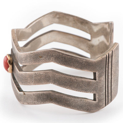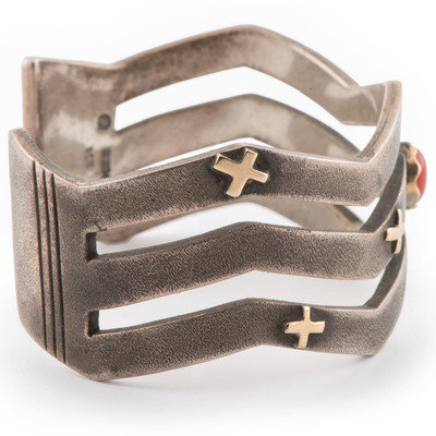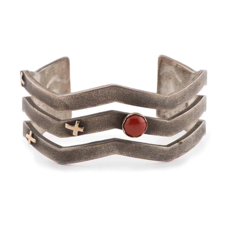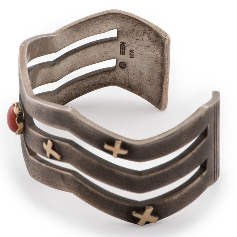 Silver Cuff Bracelet Accented with 14k Gold and Coral