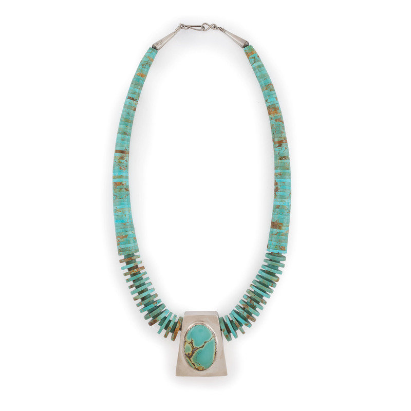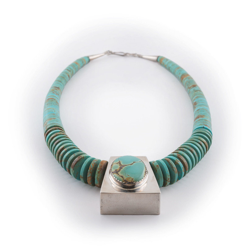 Lone Mountain Rolled Turquoise Necklace, with Sterling Silver Pendant