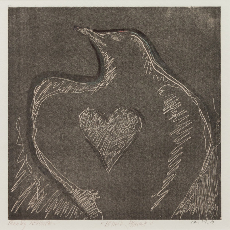 Three Works: Full Moon Owl, 2011; Father's Feather, 2010; Black Heart, 2010