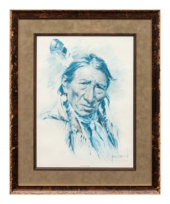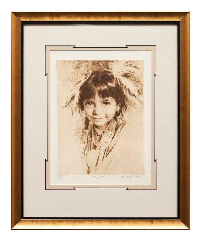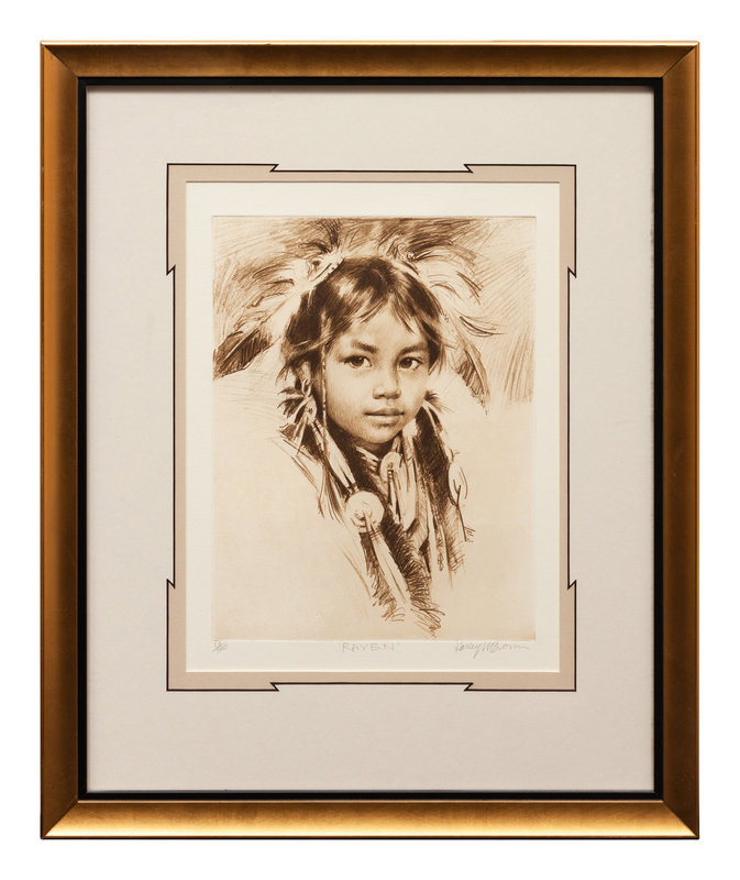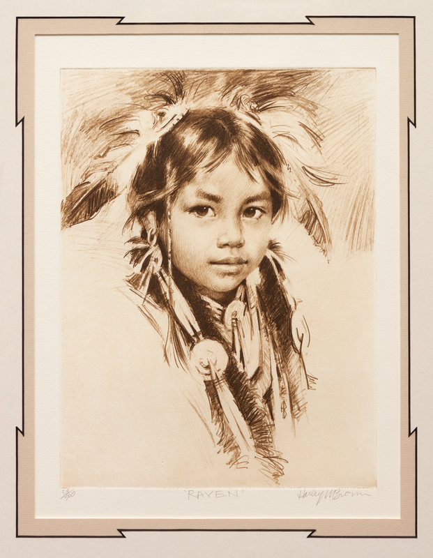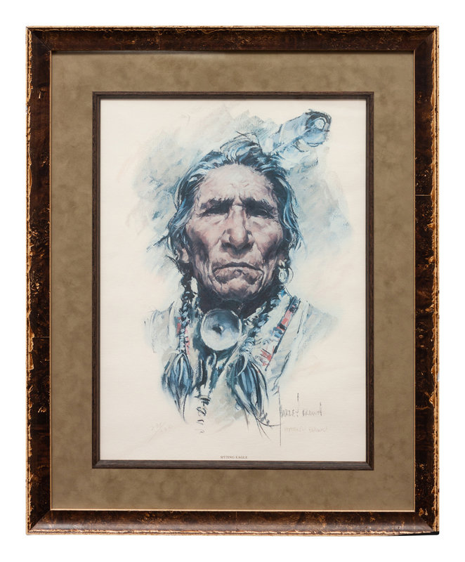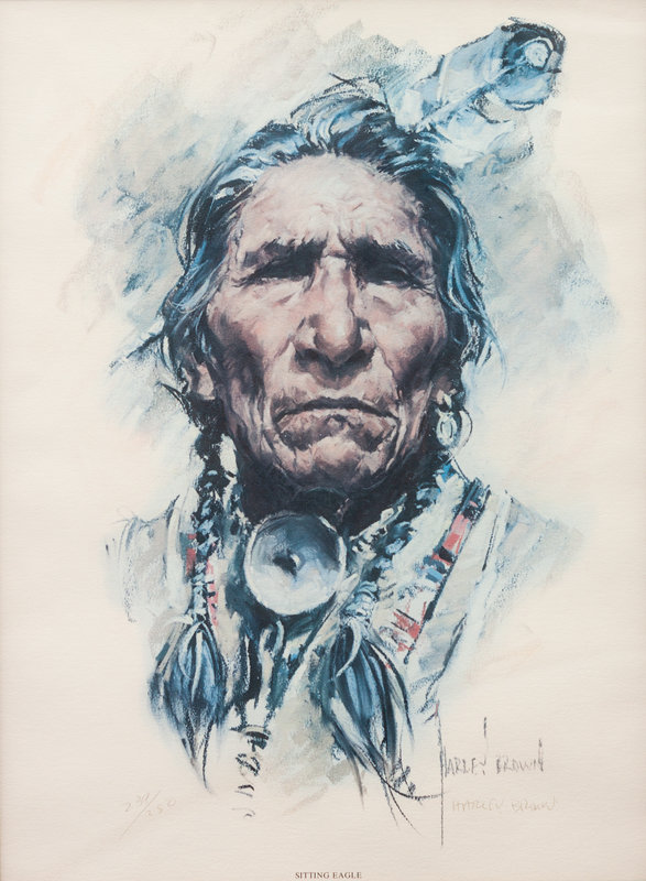 Four Prints: Blossom, edition 53/500; Sitting Eagle, edition 239/250; Raven, edition 53/500; Turning Robe, edition 239/250, together with book,The Art and Life of Harley Brown