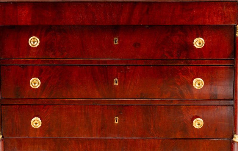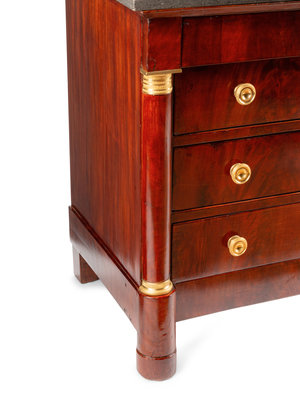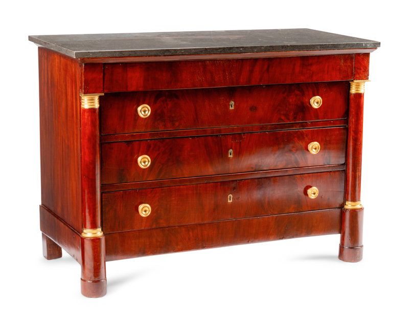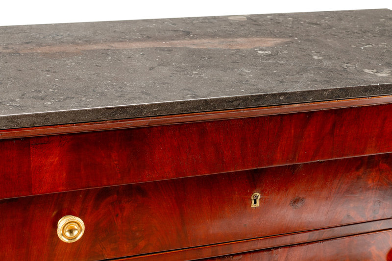 An Empire Style Gilt Bronze Mounted Mahogany Marble-Top Commode