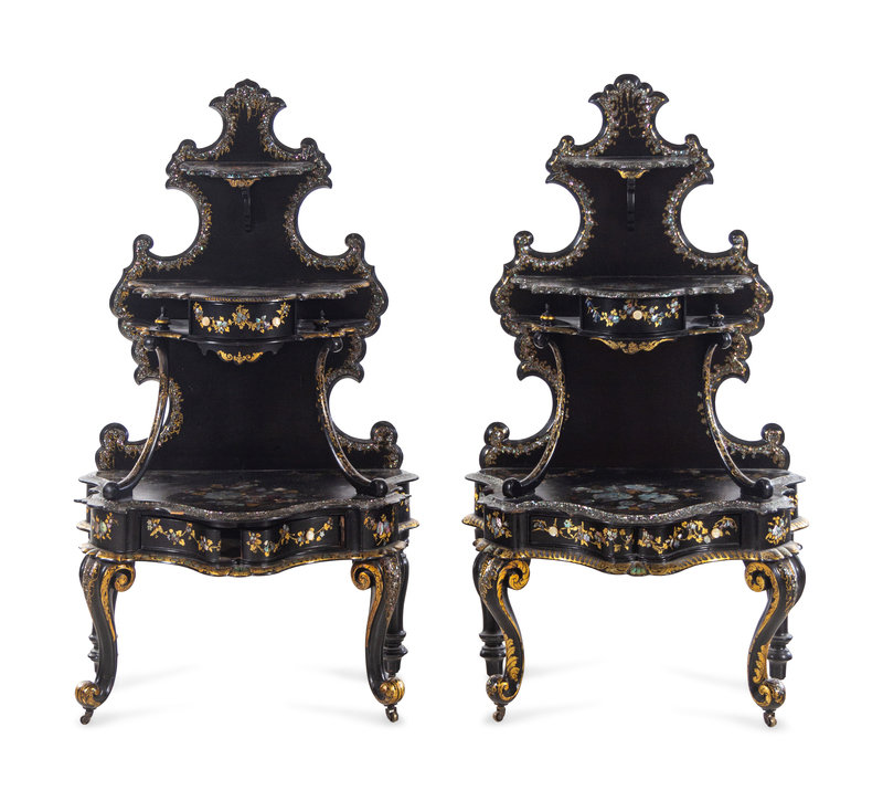 A Pair of Victorian Mother-of-Pearl Inlaid Étagères