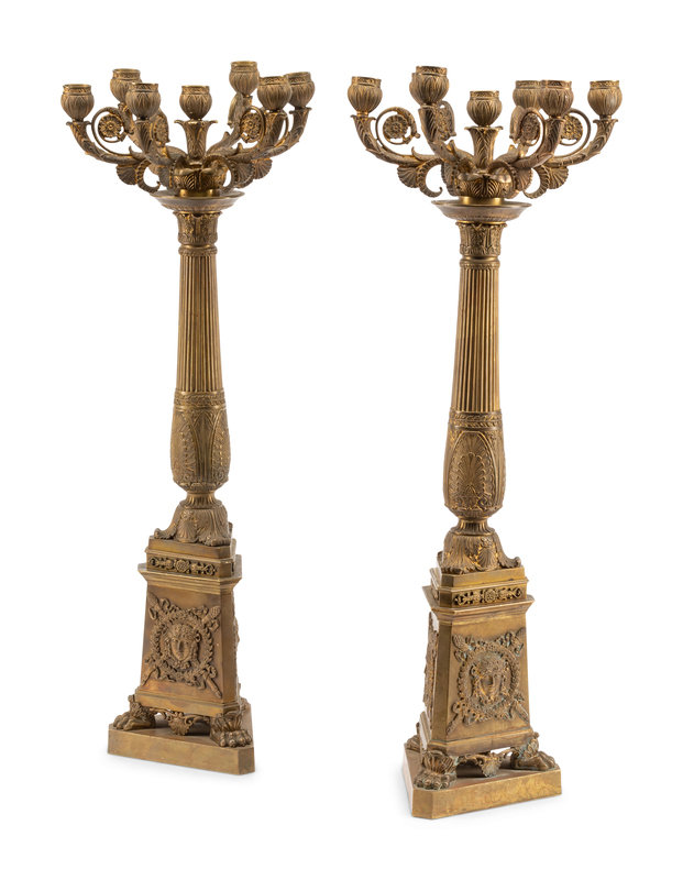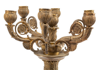 A Pair of Empire Style Gilt Bronze Seven-Light Candelabra