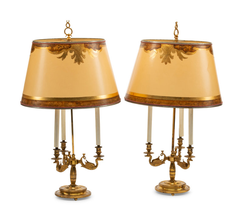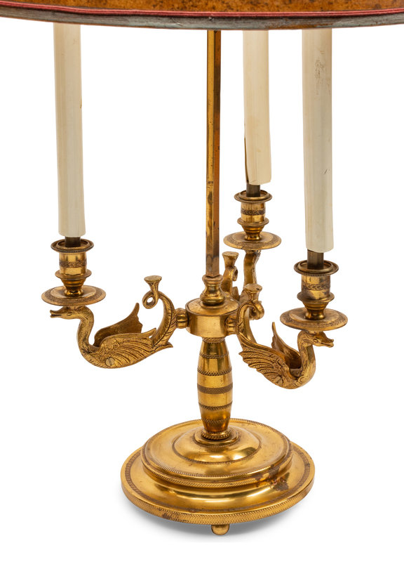 A Pair of Empire Style Gilt Metal Three-Light Candelabra Lamps
