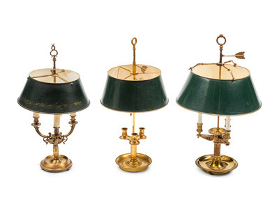 Three Empire Style Gilt Metal Bouillotte Lamps