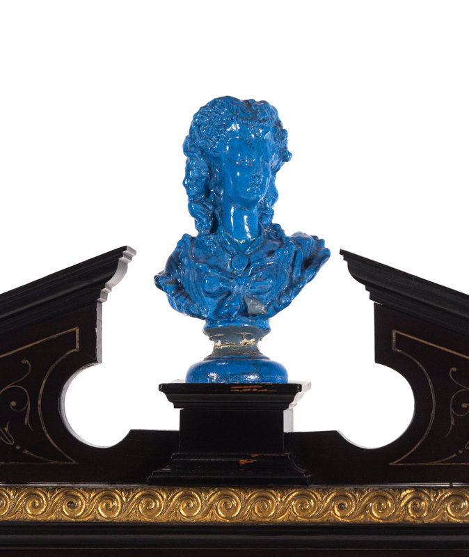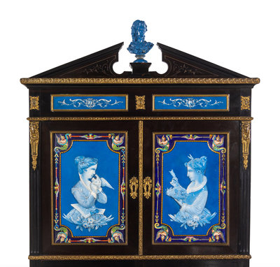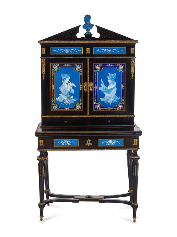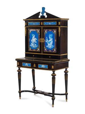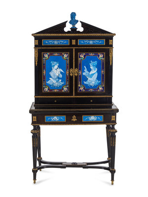 A Napoleon III Ebonized and Glazed Pottery Plaque-Mounted Secrétaire