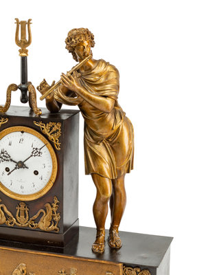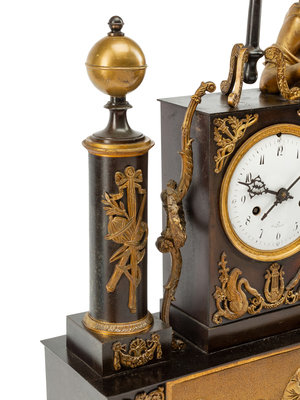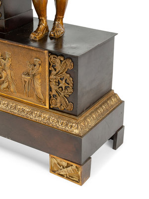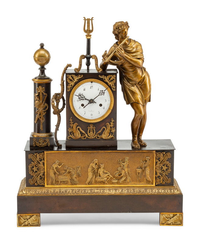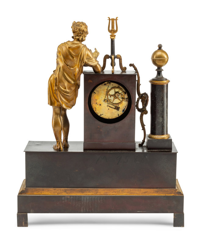 A Louis Philippe Gilt and Patinated Bronze Figural Mantel Clock
