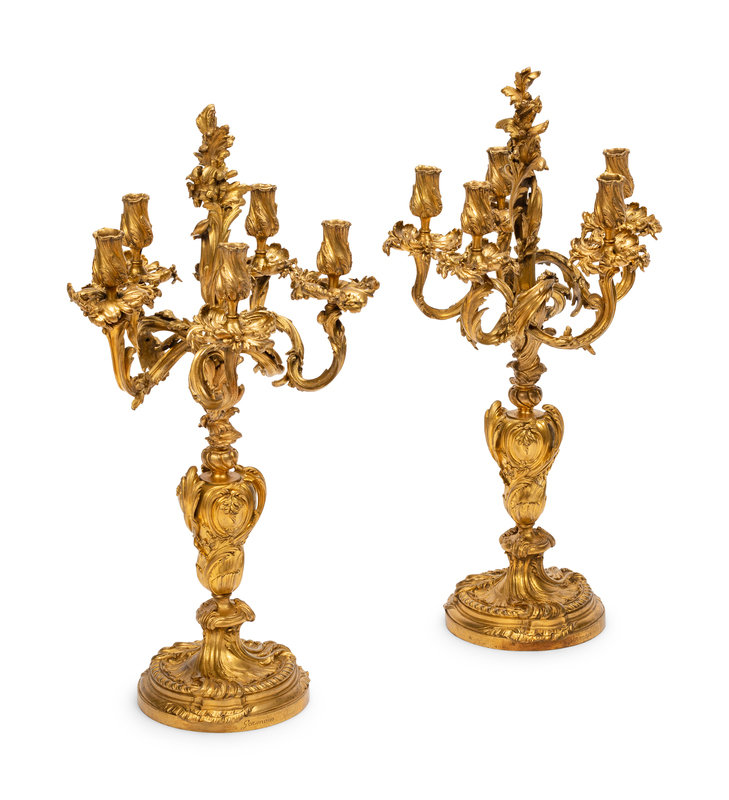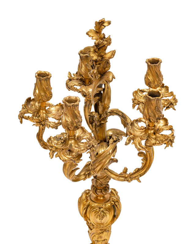 A Pair of Napoleon III Gilt Bronze Five-Light Candelabra