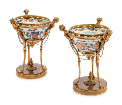 A Pair of French Gilt Bronze Mounted Chinese Porcelain Coupes