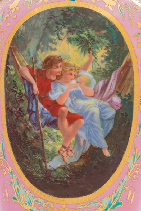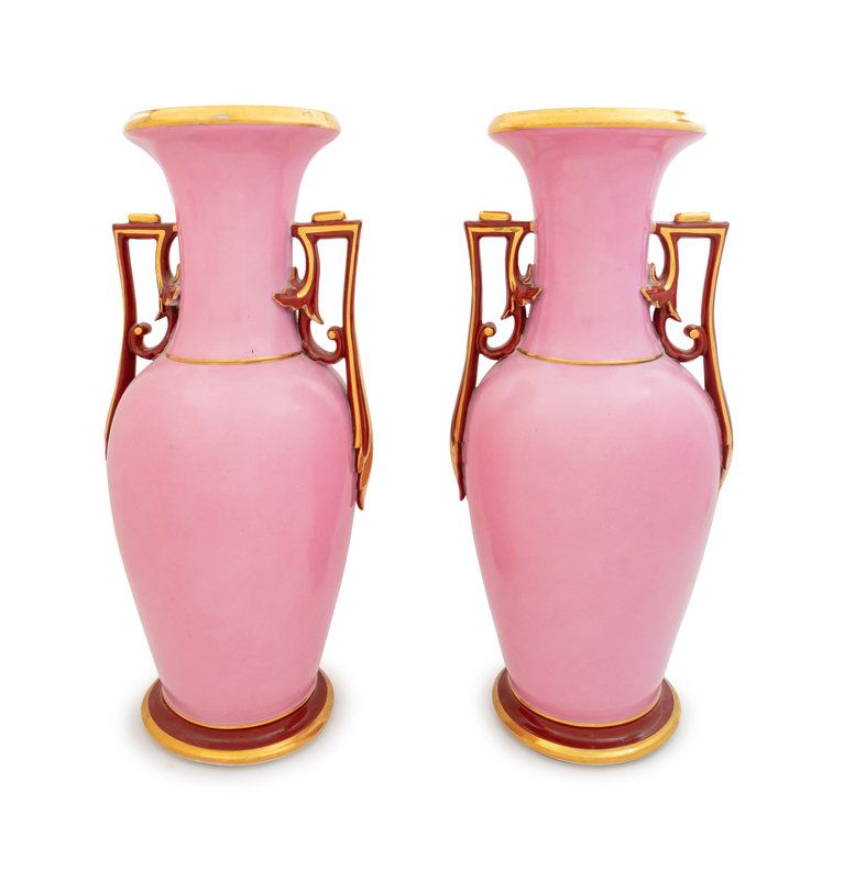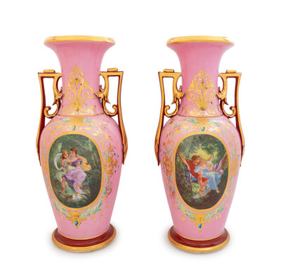 A Pair of Paris Porcelain Painted and Parcel Gilt Vases