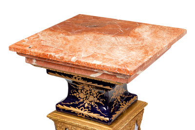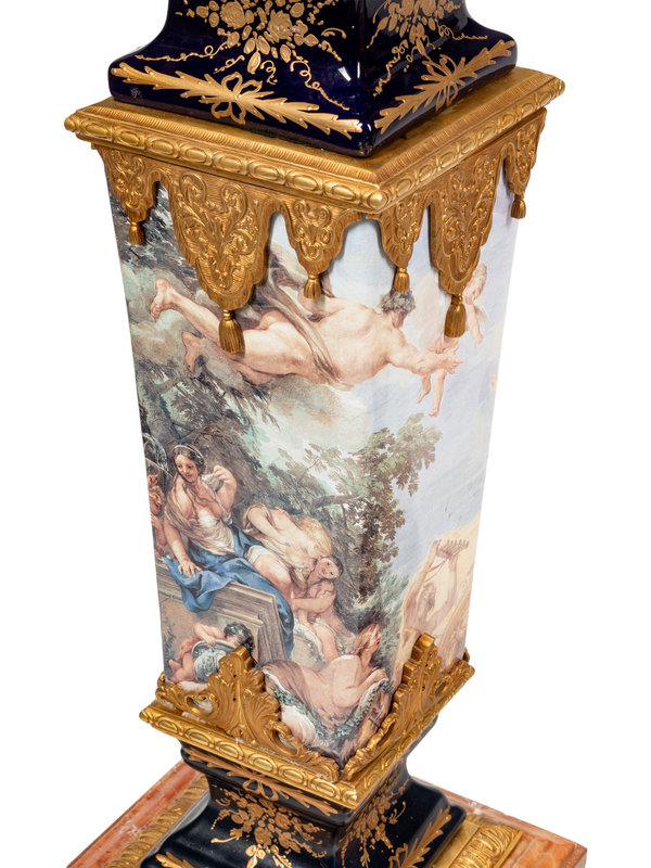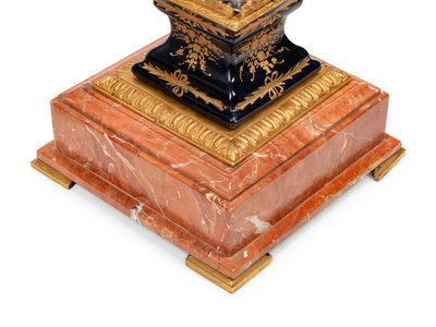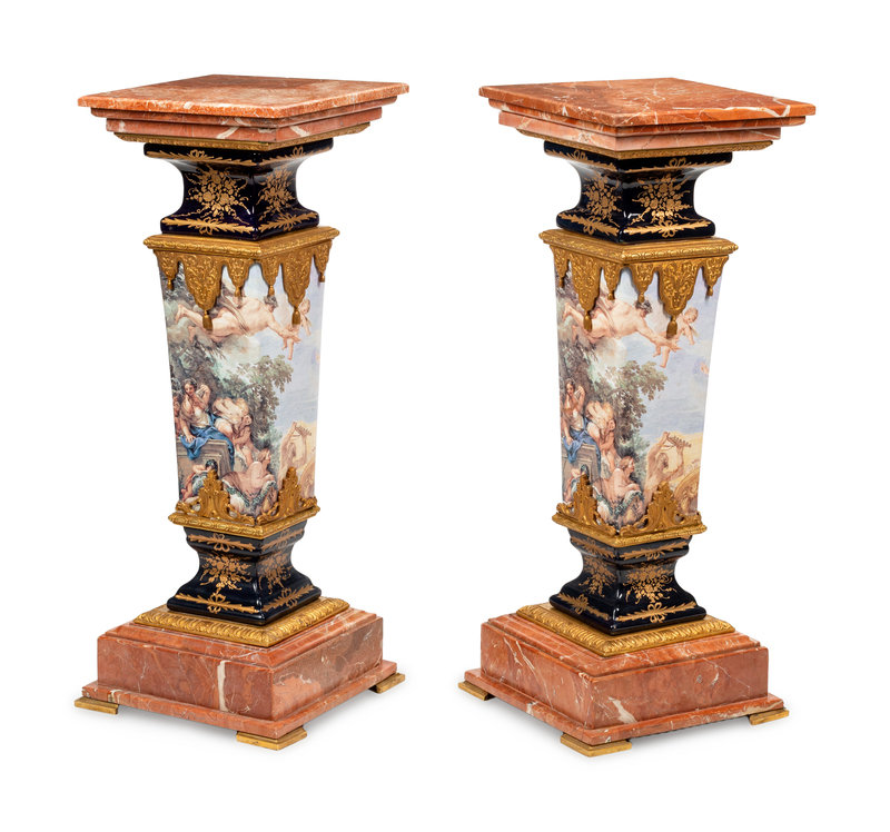 A Pair of Sèvres Style Gilt Bronze Mounted Marble and Transfer-Printed Porcelain Pedestals