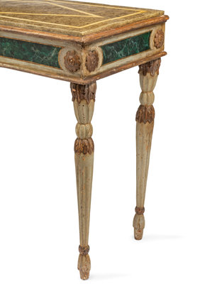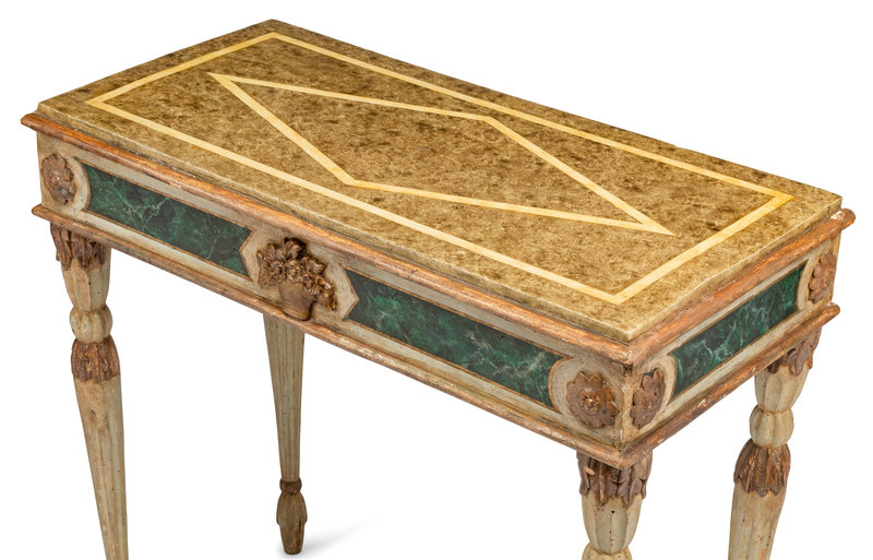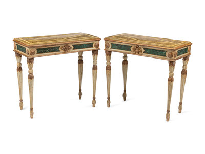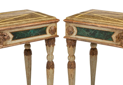 A Pair of Italian Faux Marble Painted Console Tables